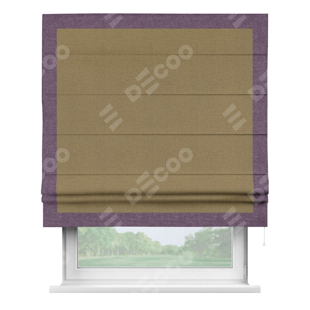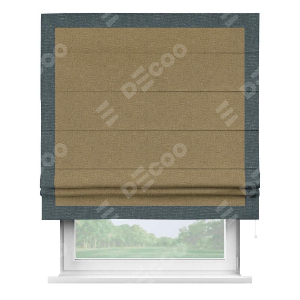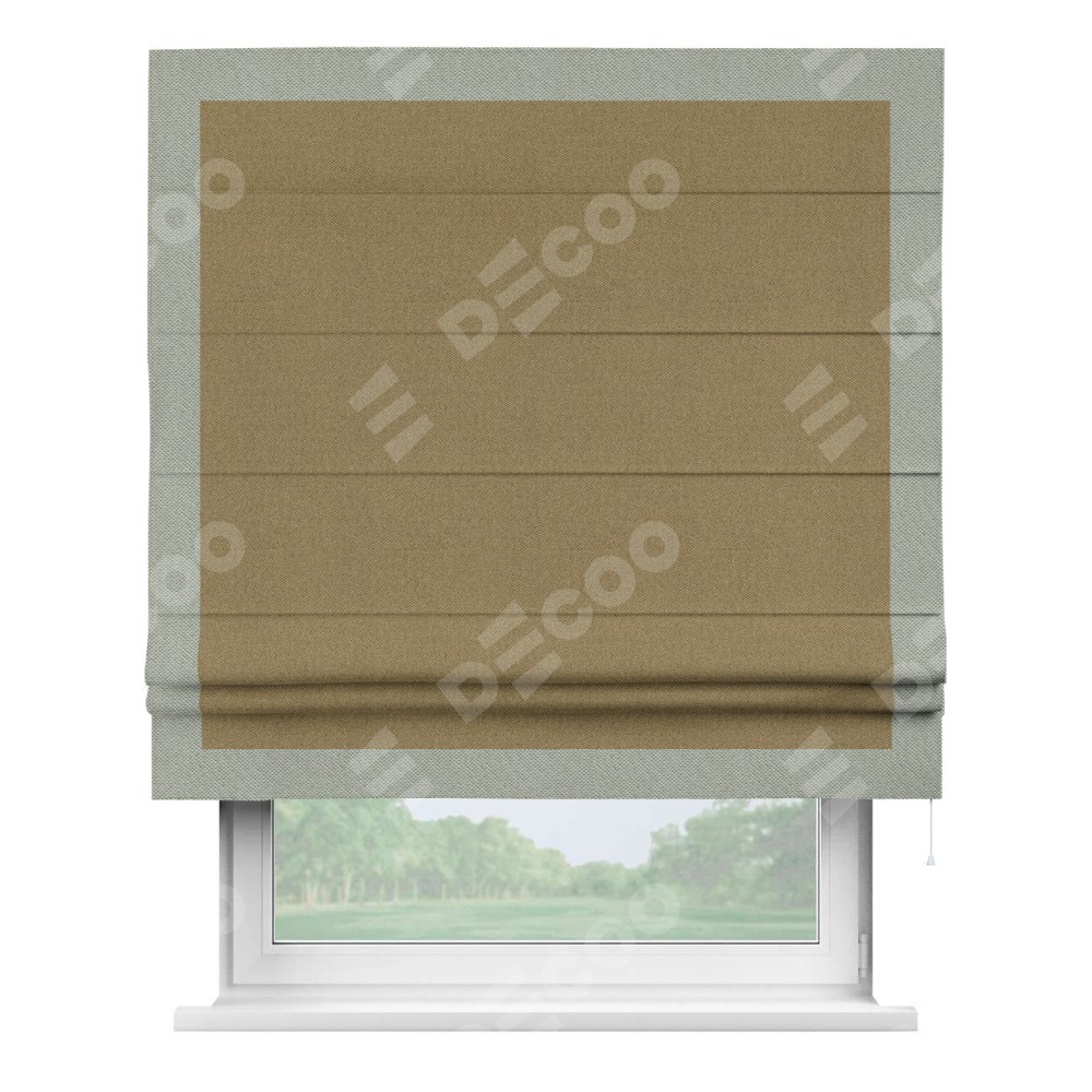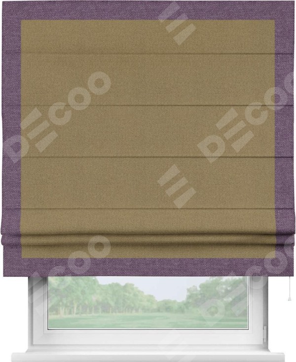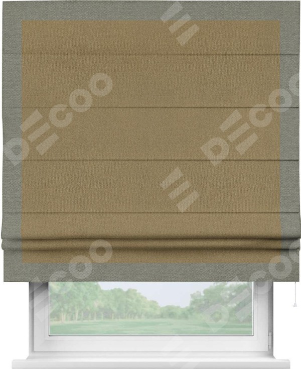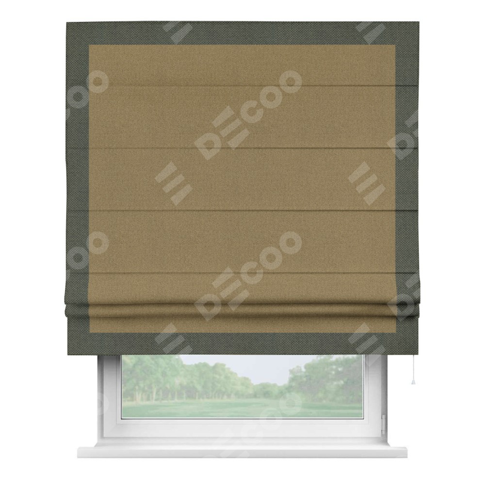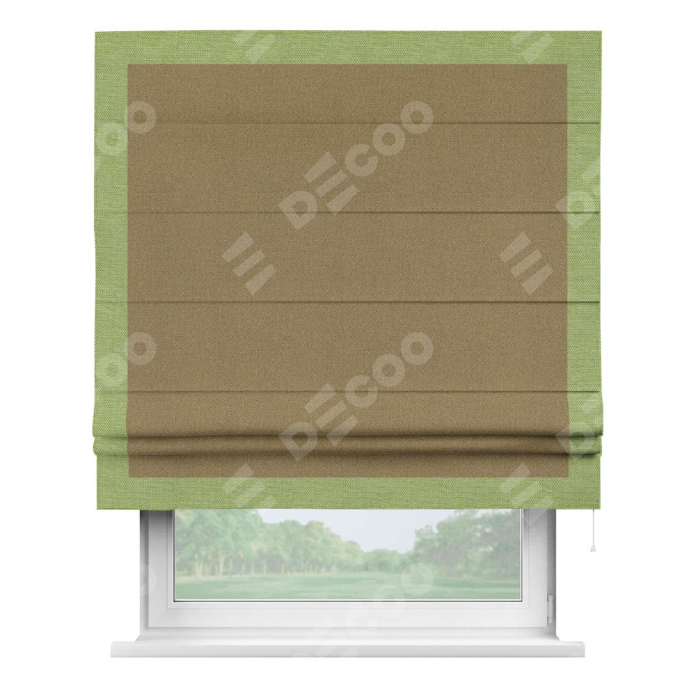 Римская штора «Кортин» с кантом Чесс, для проема, ткань лён димаут, оливковый