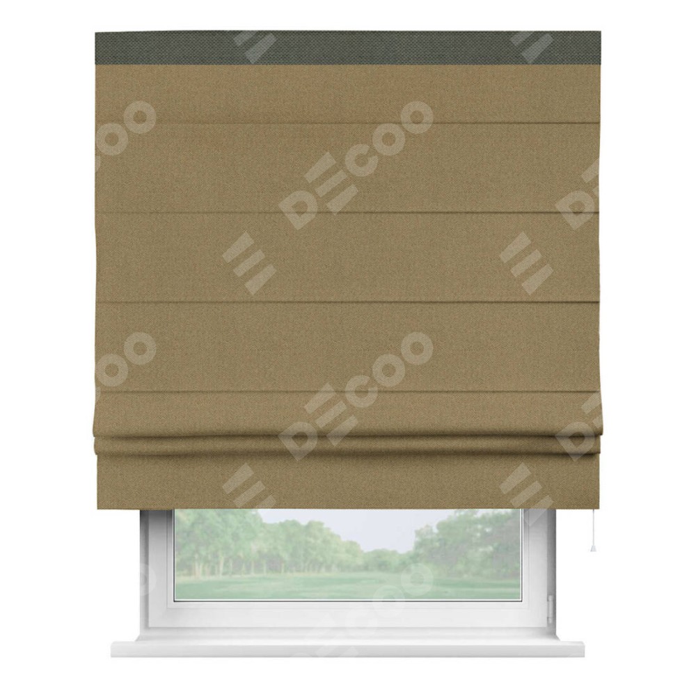 Римская штора «Кортин» с кантом Кинг, для проема, ткань лён димаут, оливковый