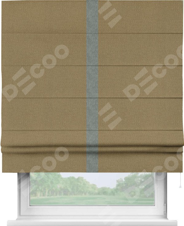 Римская штора производителя «Cortin», используется для проёма, пошита из ткани лён димаут оливковый, артикул 16243. Отделка шторы кантом «Хайвэй», ткань для канта используется из льна димаут разной расцветки на выбор. Имеет универсальный механизм и подходит для монтажа: на потолок, на стену и в нишу.
