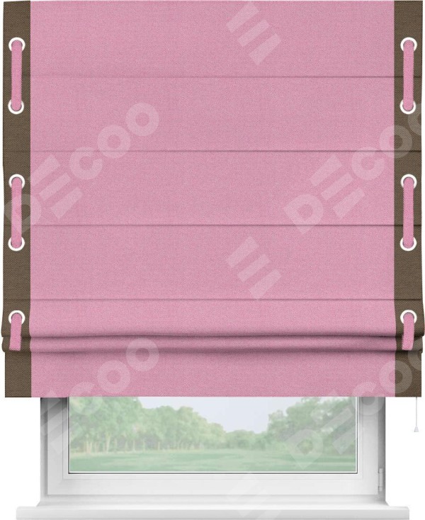 Римская штора «Кортин» с кантом Стрим Дуо (люверсы с пояском), для проема, ткань лён димаут, розовый