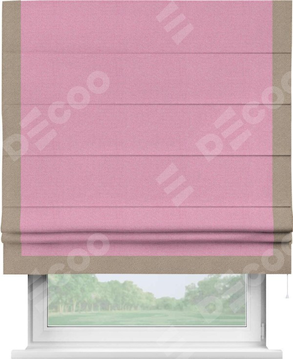 Римская штора «Кортин» с кантом Виктория, для проема, ткань лён димаут, розовый