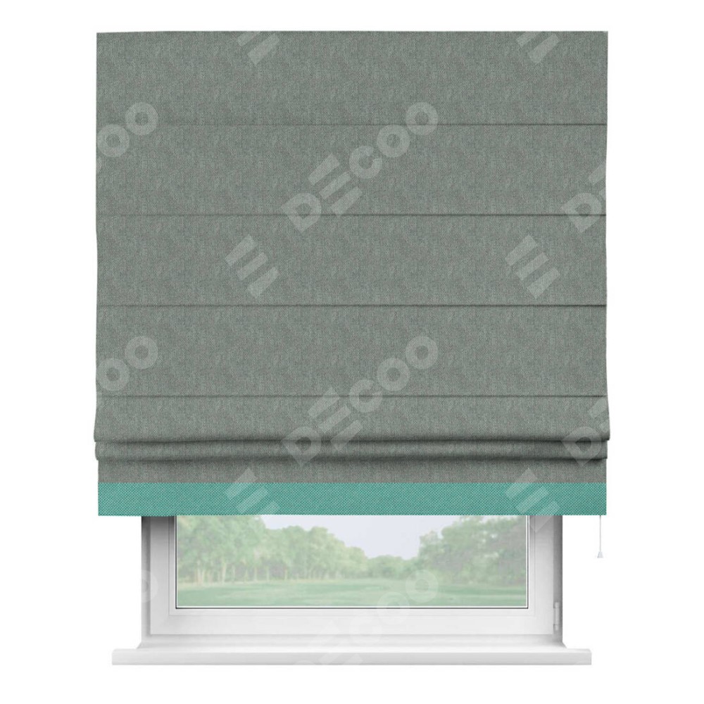 Римская штора производителя «Cortin», используется для проёма, пошита из ткани лён димаут серый, артикул 16240. Отделка шторы кантом «Джестер», ткань для канта используется из льна димаут разной расцветки на выбор. Имеет универсальный механизм и подходит для монтажа: на потолок, на стену и в нишу.