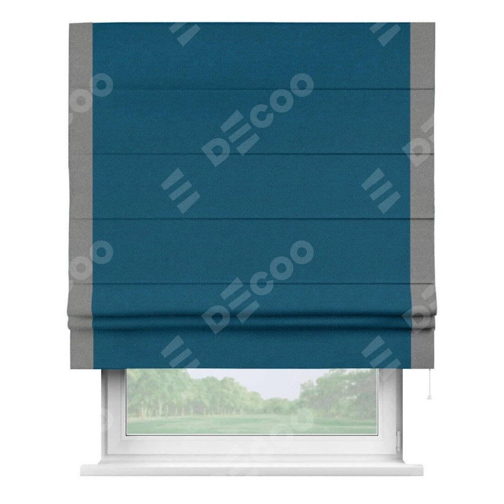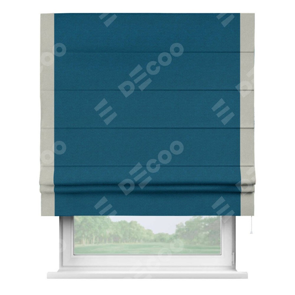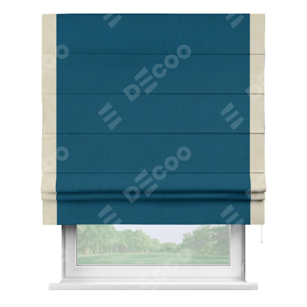 Римская штора «Кортин» с кантом Стрим Дуо, для проема, ткань лён димаут, синий