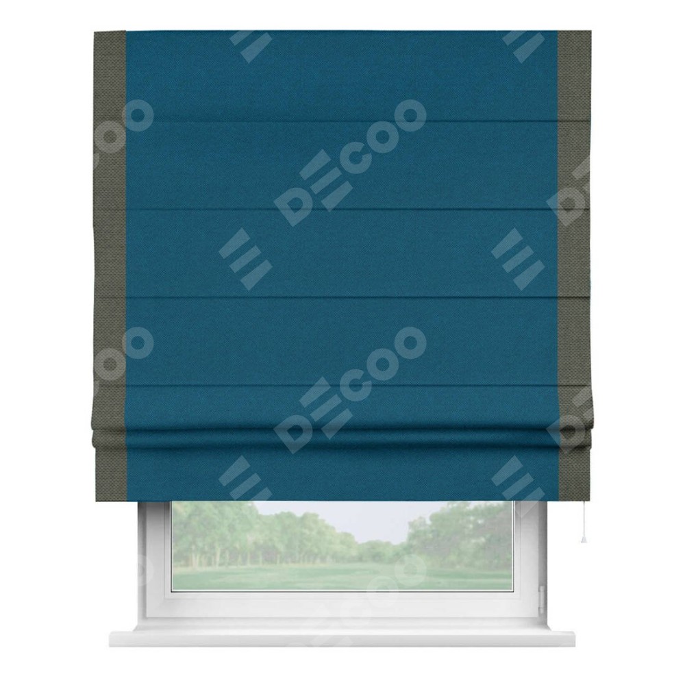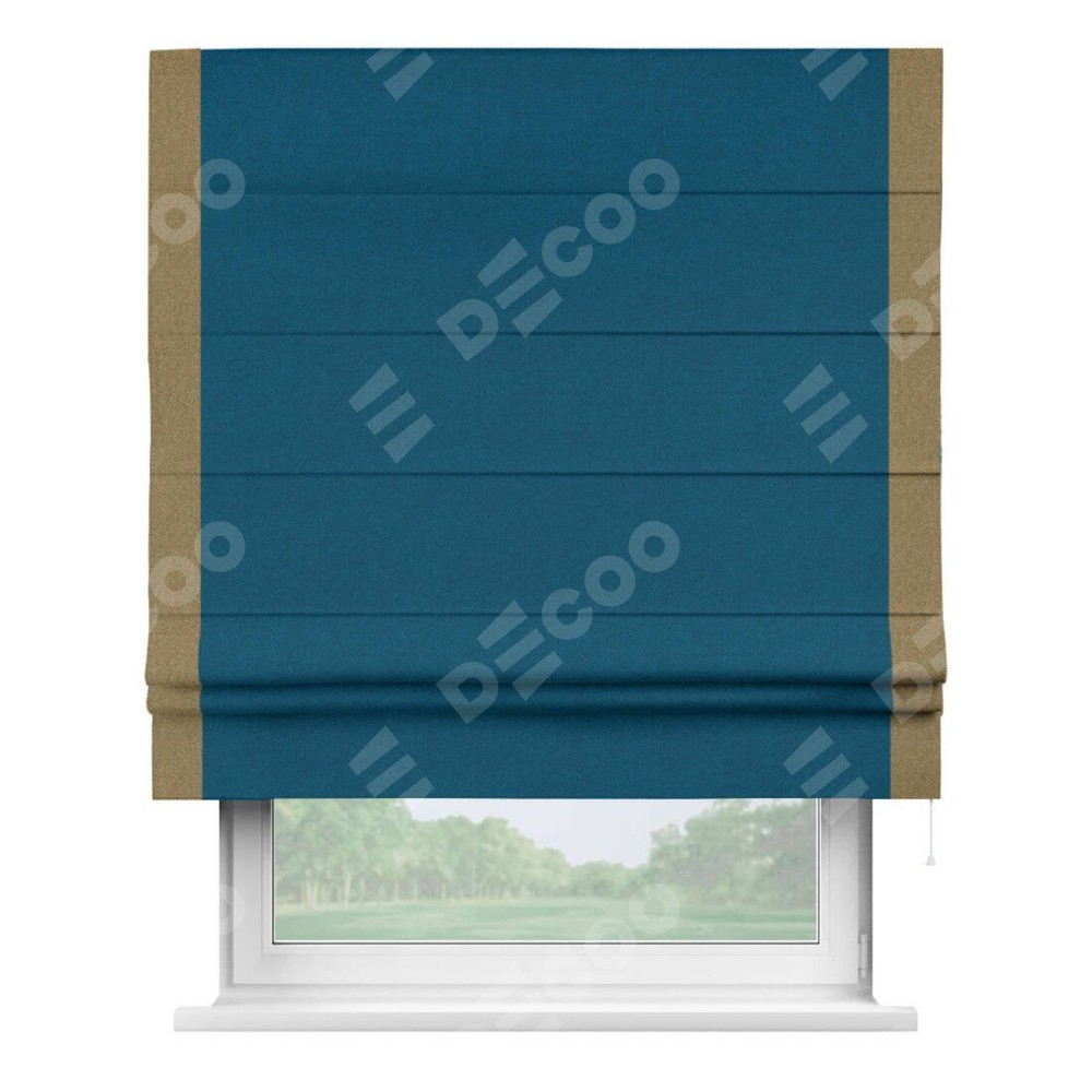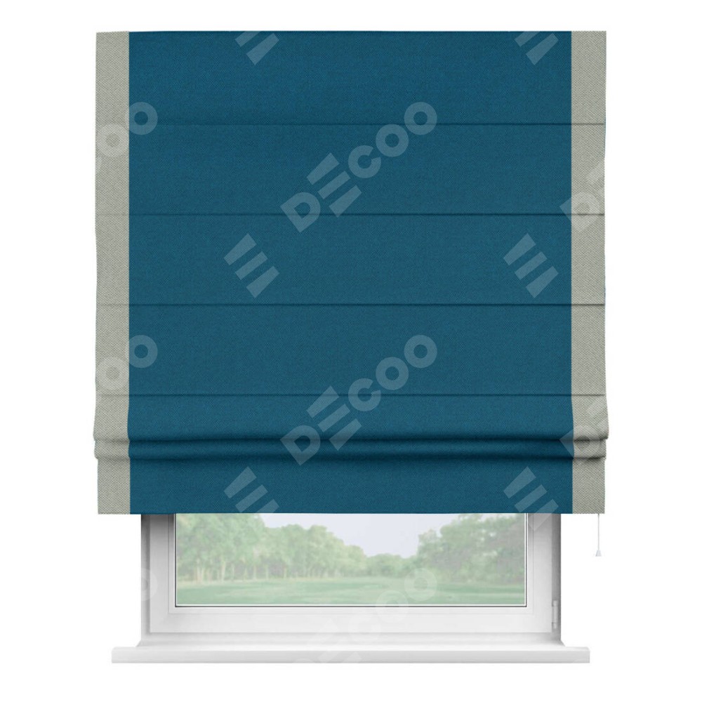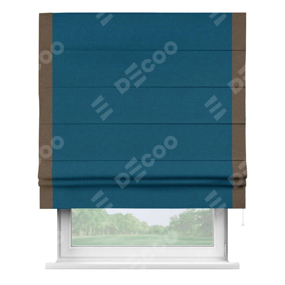 Римская штора «Кортин» с кантом Стрим Дуо, для проема, ткань лён димаут, синий