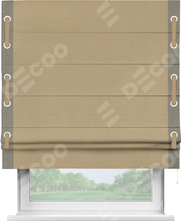 Римская штора «Кортин» с кантом Стрим Дуо (люверсы с пояском), для проема, ткань лён димаут, тёмно-бежевый
