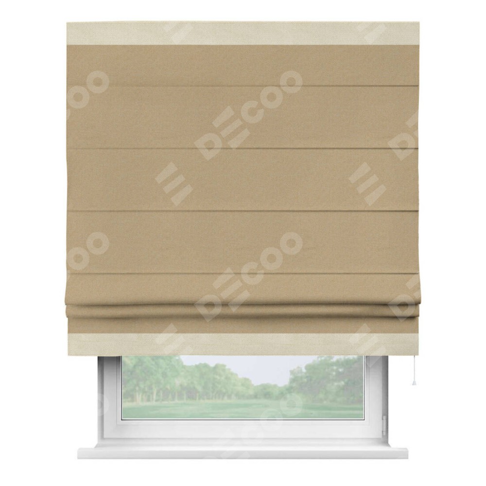 Римская штора «Кортин» с кантом Горизонт, для проема, ткань лён димаут, тёмно-бежевый