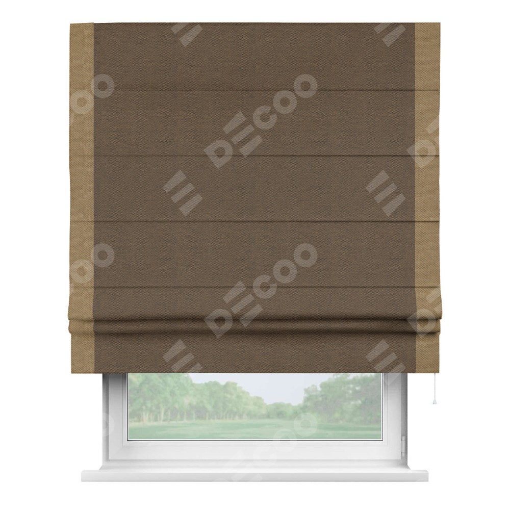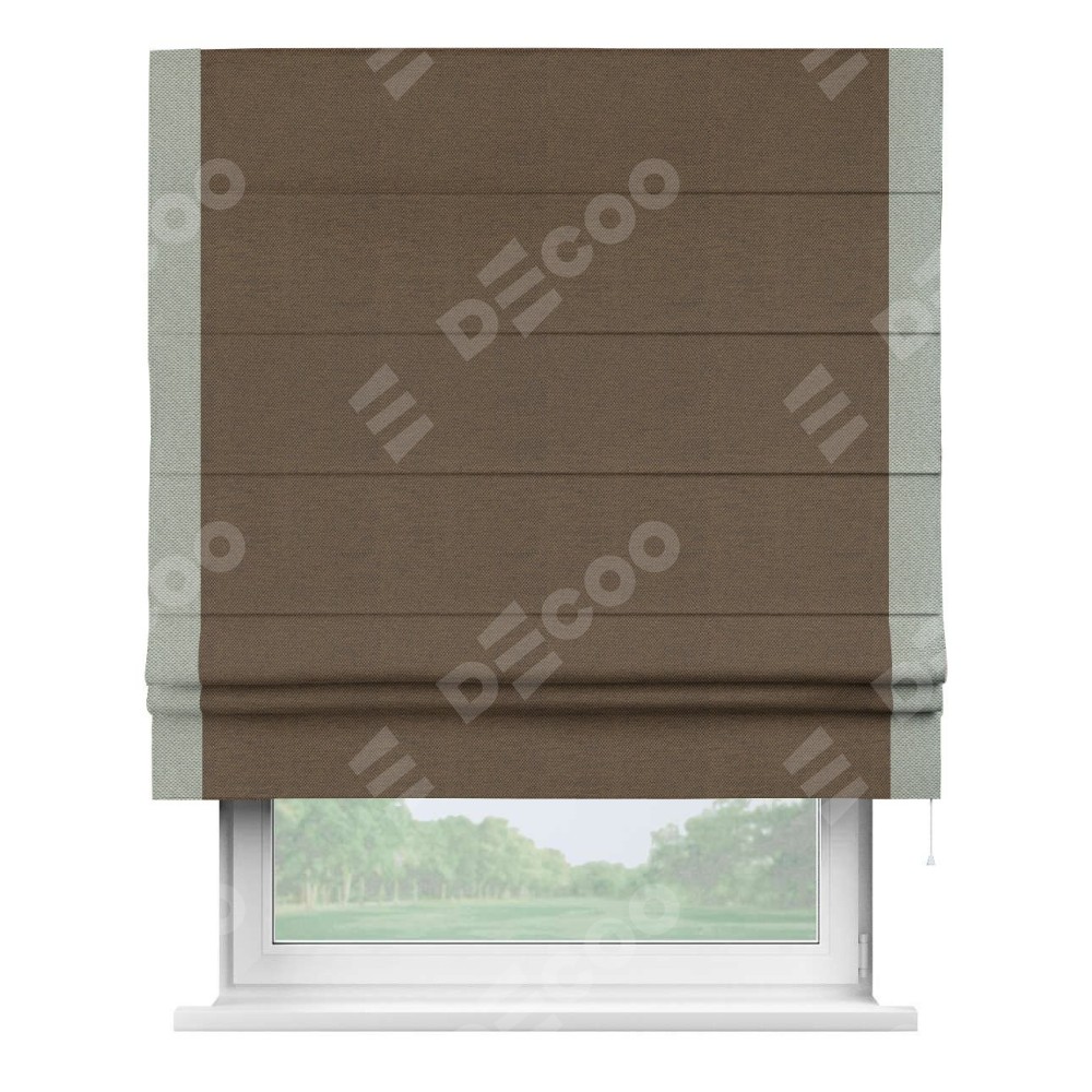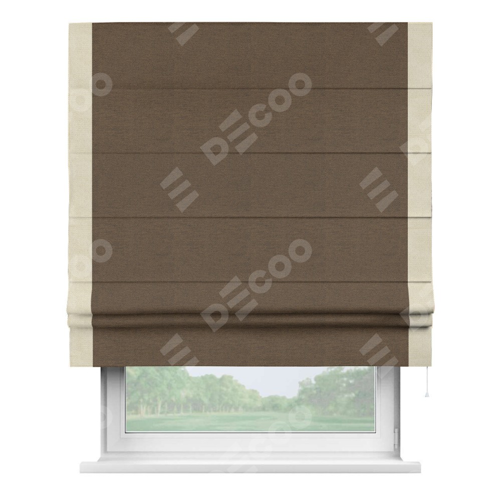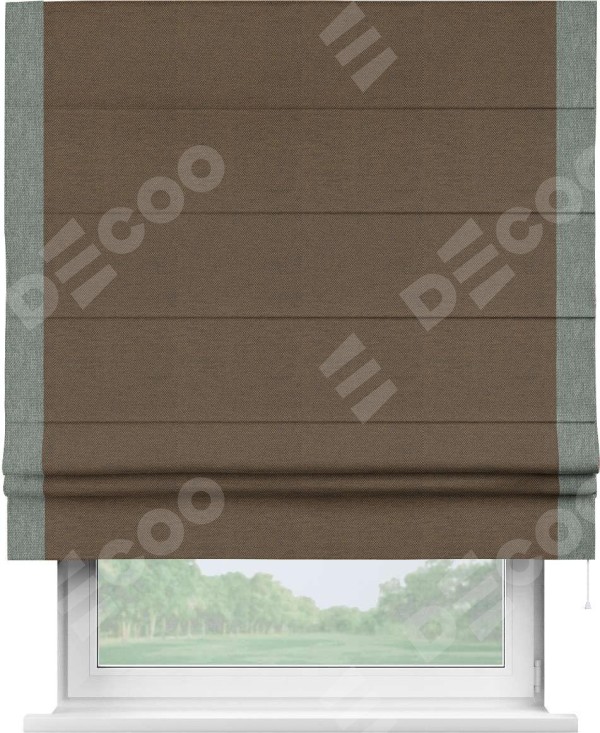 Римская штора «Кортин» с кантом Стрим Дуо, для проема, ткань лён димаут, тёмно-коричневый