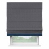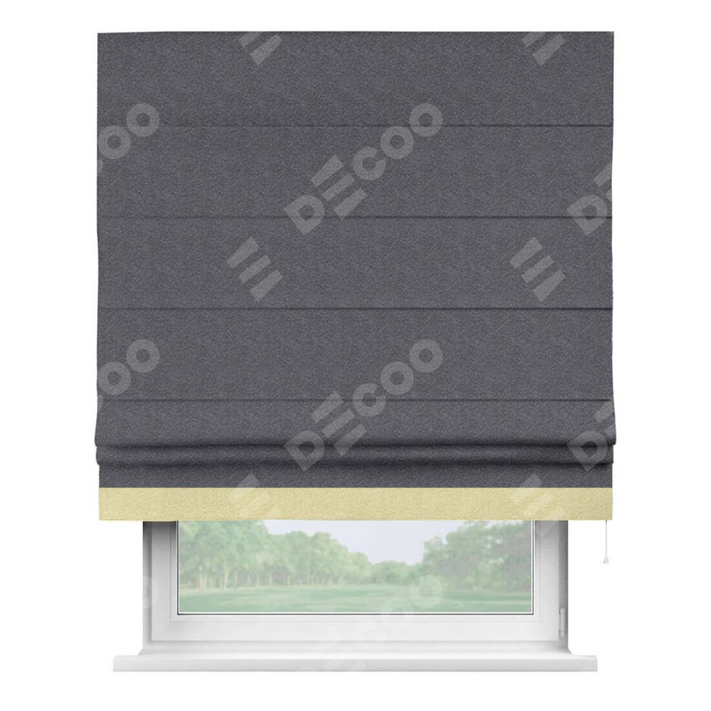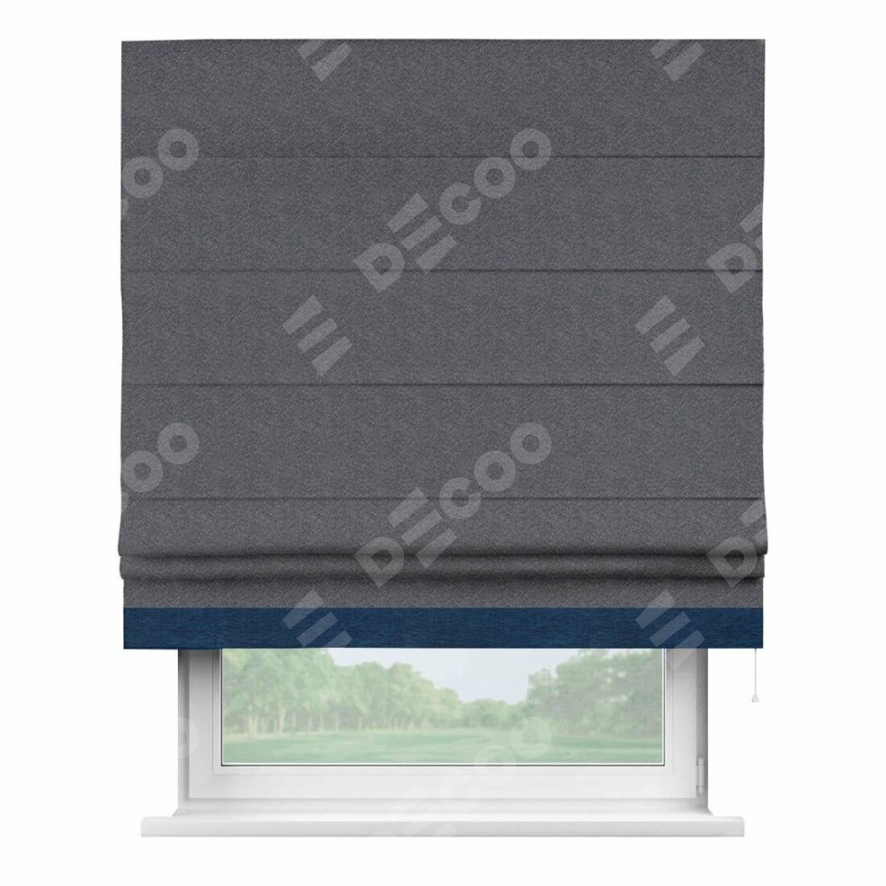 Римская штора производителя «Cortin», используется для проёма, пошита из ткани софт однотонный графит, артикул 19316. Отделка шторы кантом «Джестер», ткань для канта используется из софта разной расцветки на выбор. Имеет универсальный механизм и подходит для монтажа: на потолок, на стену и в нишу.
