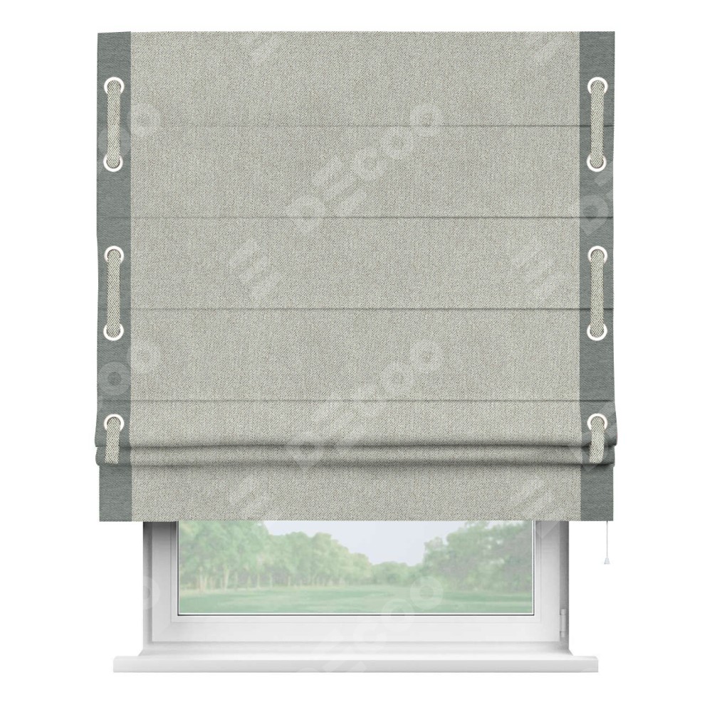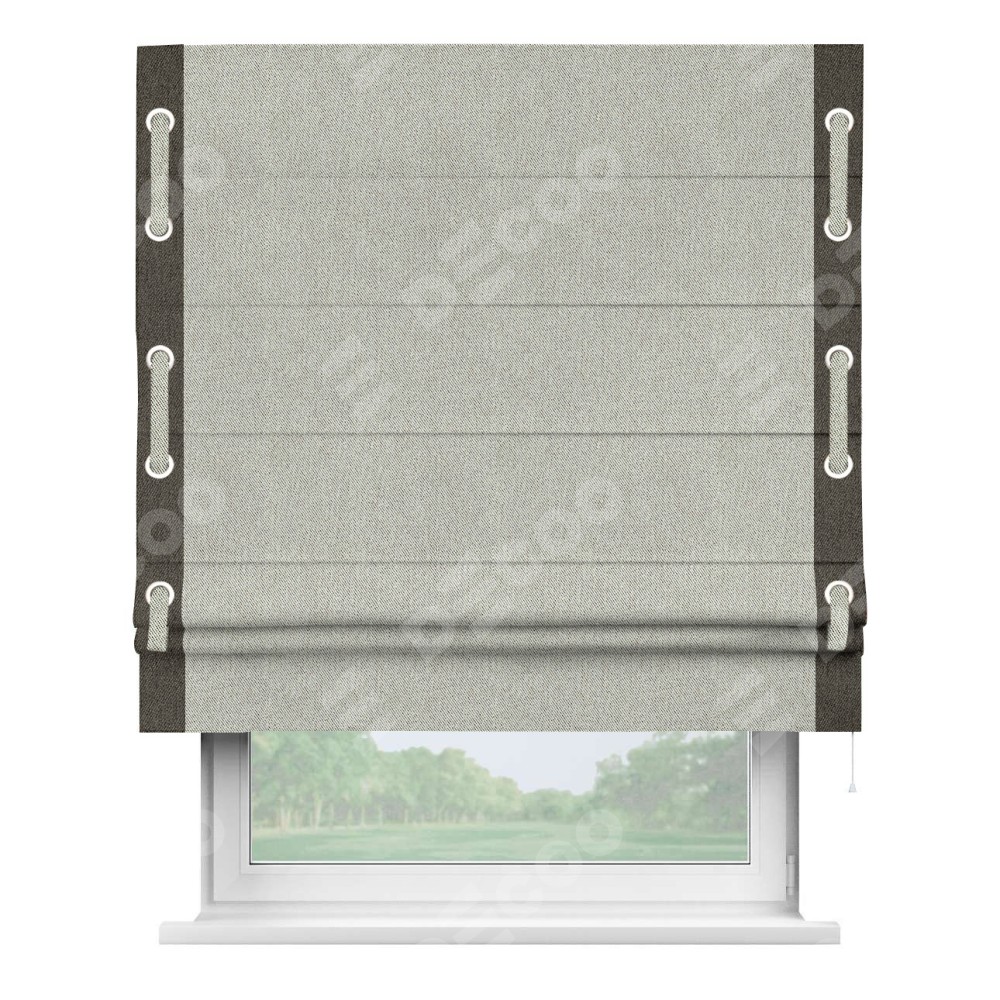 Римская штора «Кортин» с кантом Стрим Дуо (люверсы с пояском), для проема, ткань твид блэкаут, коричнево-серый