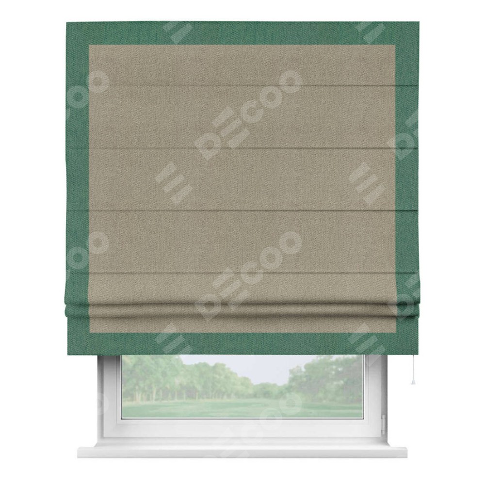 Римская штора производителя «Cortin», используется для проёма, пошита из ткани твид блэкаут кофе, артикул 21575. Отделка шторы кантом «Чесс», ткань для канта используется из твида разной расцветки на выбор. Имеет универсальный механизм и подходит для монтажа: на потолок, на стену и в нишу.