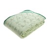 Наматрасник закрепляется резинками по углам. Это позволяет ему оставаться на месте на протяжении всей ночи. Чехол наматрасника выполнен в светло-зелёных тонах из смеси хлопка и полиэстера.
