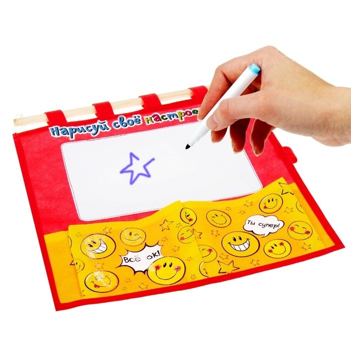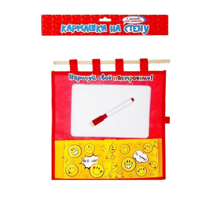 Кармашек на стену с доской для записей «Нарисуй свое настроение», 2 отделения