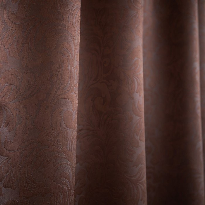 Штора портьерная, «Водевиль», 135×260 см, цвет шоколад, тиснение — модель с изысканным объёмным узором, которая не только освежит интерьер, но и надёжно защитит комнату от ярких солнечных лучей.