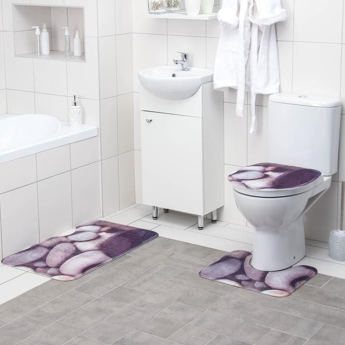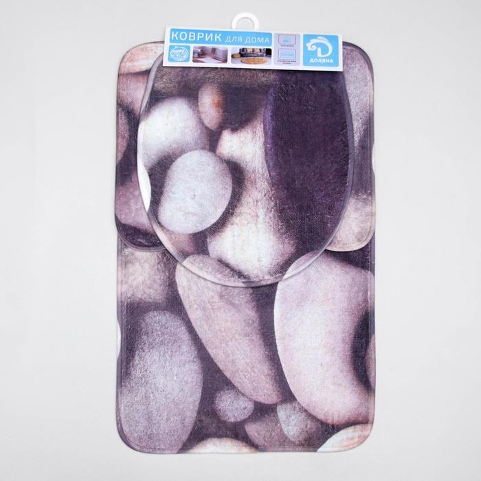 Набор ковриков для ванны и туалета Доляна «Камни», 3 шт: 38×46, 40×45, 45×75 см
