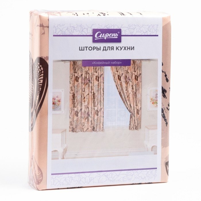 Фотошторы кухонные «Кофейный набор», размер 145×160 см — 2 шт., габардин