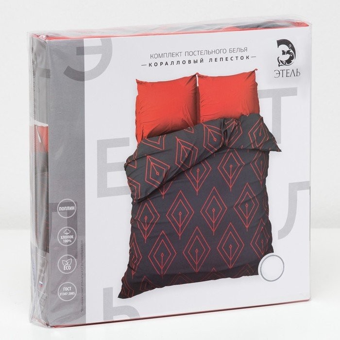 Постельное бельё «Этель» 1,5 сп. Коралловый лепесток 143×215 см, 150×214 см, 70×70 см — 2 шт., поплин 125 г/м²