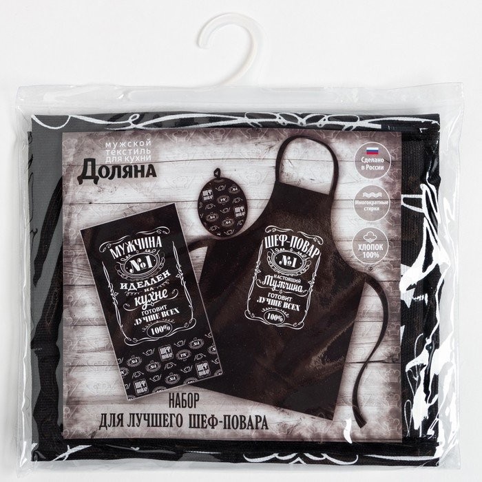Кухонный набор 3 пр. «Шеф-повар №1» фартук 60×70 см, прихватка 20×20 см, полотенце 35×60 см