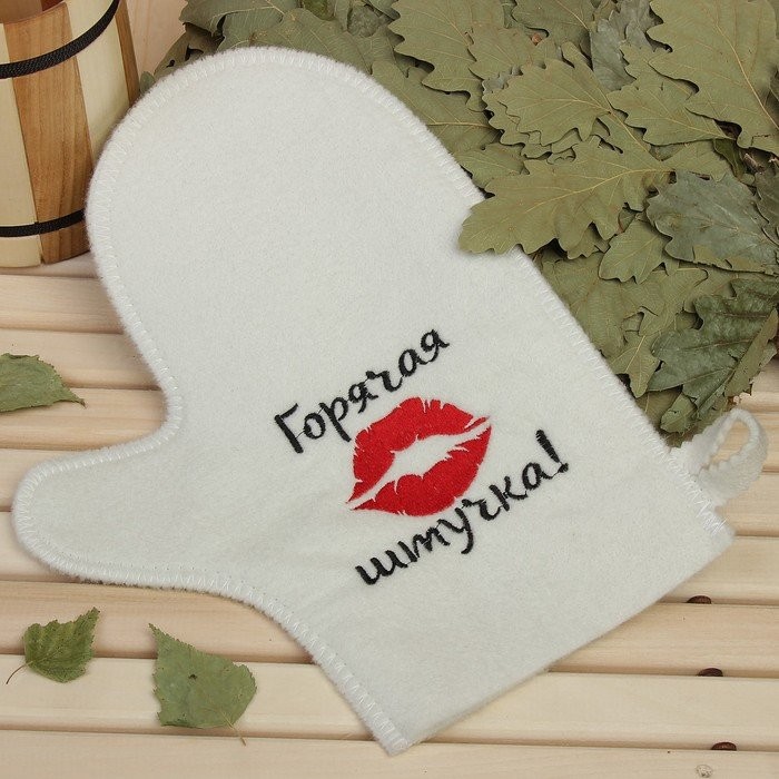 Рукавица для бани с вышивкой «Горячая штучка» первый сорт