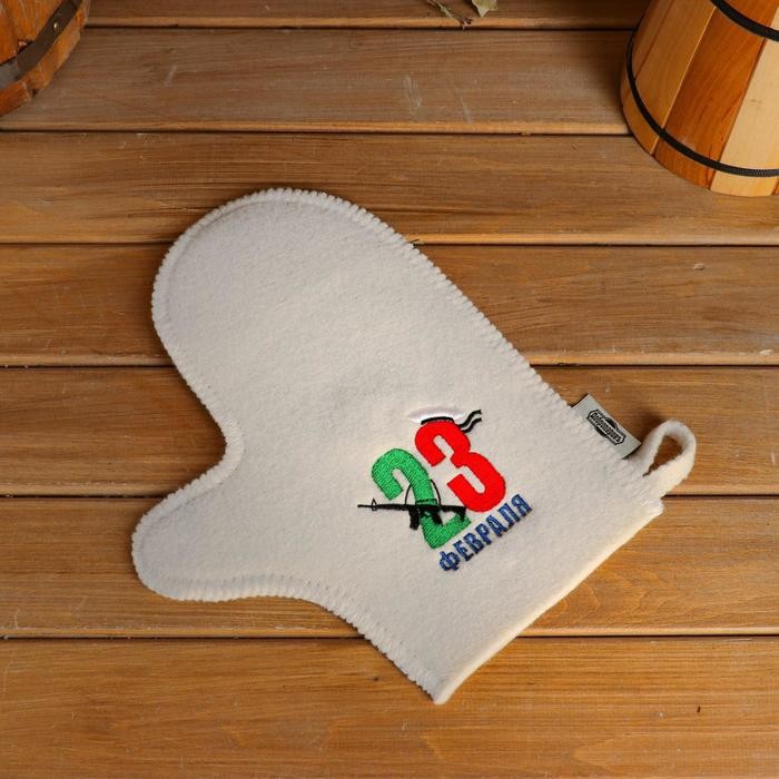 Рукавица для бани с вышивкой «23 февраля» автомат, первый сорт