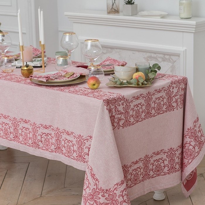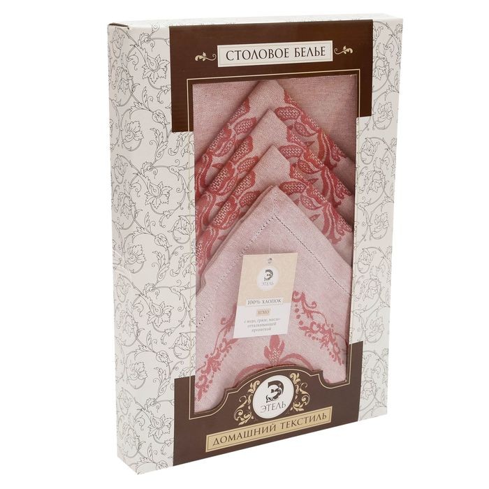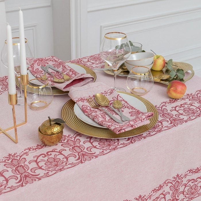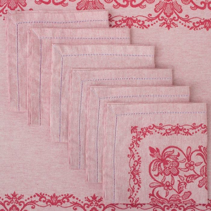 Столовый набор «Этель» (скатерть 150×250 см, салфетки 45×45 см — 8 шт.) цвет бордо, хл. с ВМГО