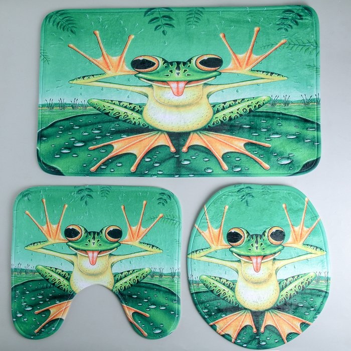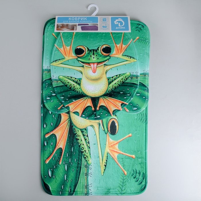 Набор ковриков для ванны и туалета Доляна «Лягушонок», 3 шт: 37×42, 40×45, 45×75 см