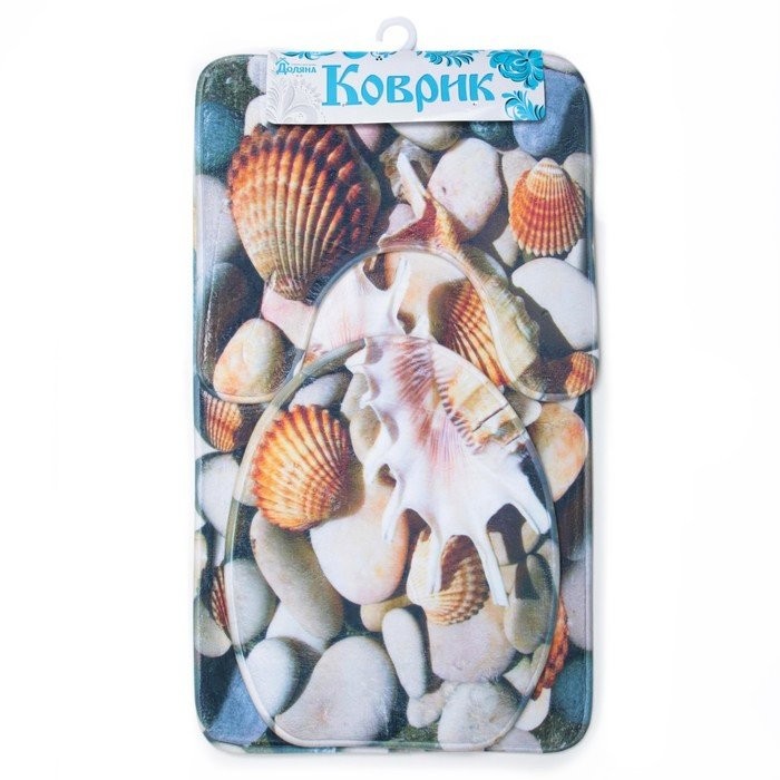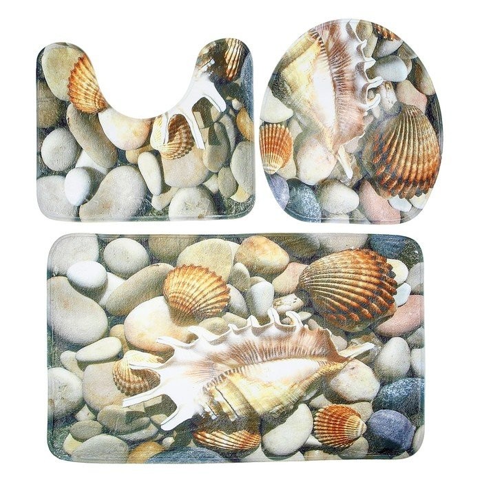 Набор ковриков для ванны и туалета Доляна «Ракушки», 3 шт: 37×45, 37×45, 45×75 см
