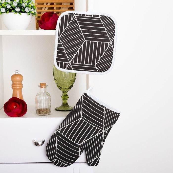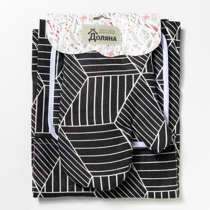 Набор Доляна фартук/прихватка/варежка, Тренд черн, 100%пэ, рогожка 200 гр/м