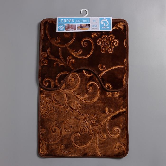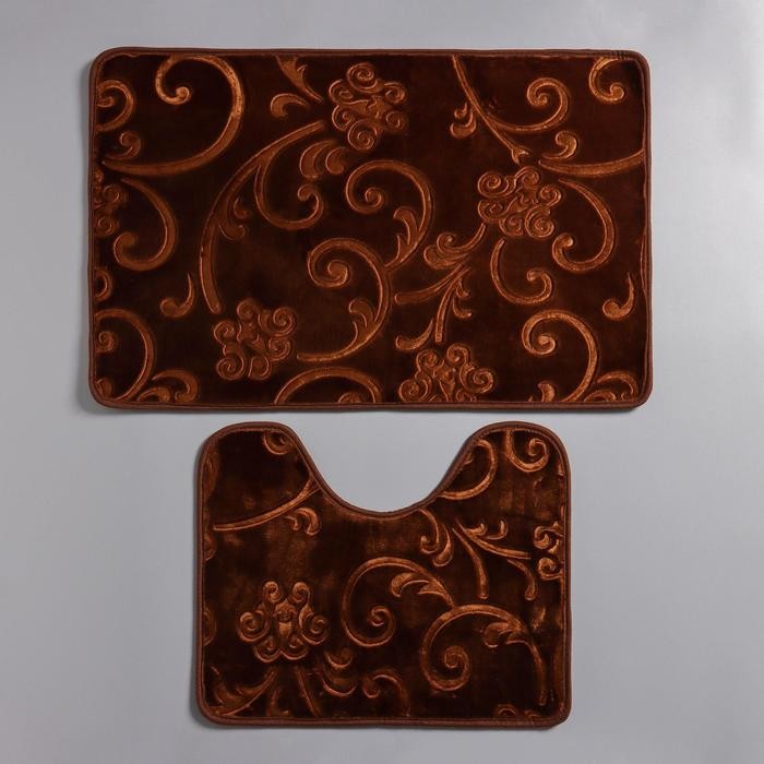 Набор ковриков для ванны и туалета Доляна «Афина», 2 шт: 40×50, 50×78 см, цвет коричневый