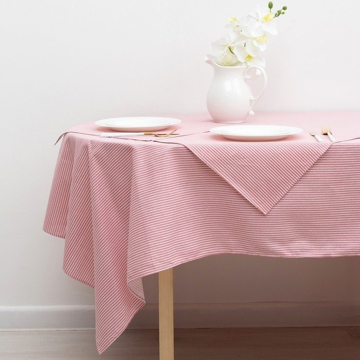 Набор Доляна скатерть 145х200см/салфетки 40х40см 4шт, Розовые полоски, 100%пэ,рогожка 200 гр/м 358