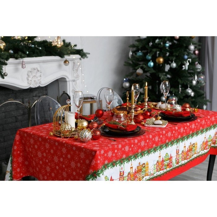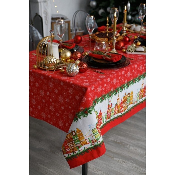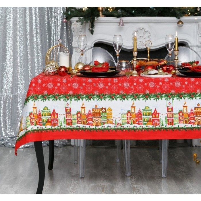 Скатерть Доляна «Новый год: Волшебный город» 220×149 см, 100% хлопок, 164 г/м2