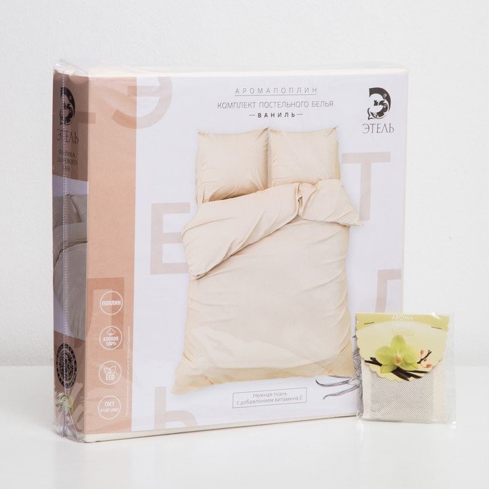 Постельное бельё «Этель» дуэт Арома Поплин 150×210 см — 2 шт., 220×240 см, 50×70 см — 2 шт., Ваниль, 125 г/м², 100% хл