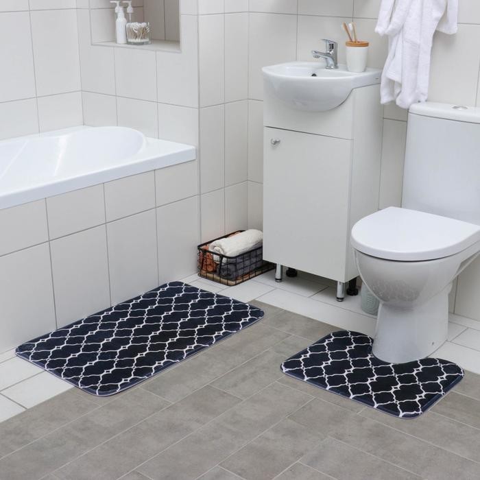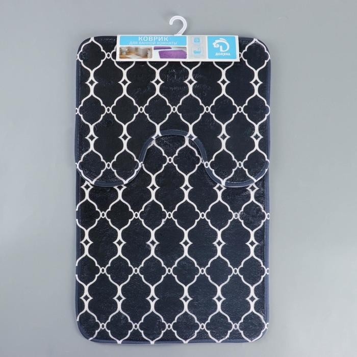 Набор ковриков для ванны и туалета Доляна «Сантра», 2 шт 40×50, 50×80 см, цвет чёрно-белый
