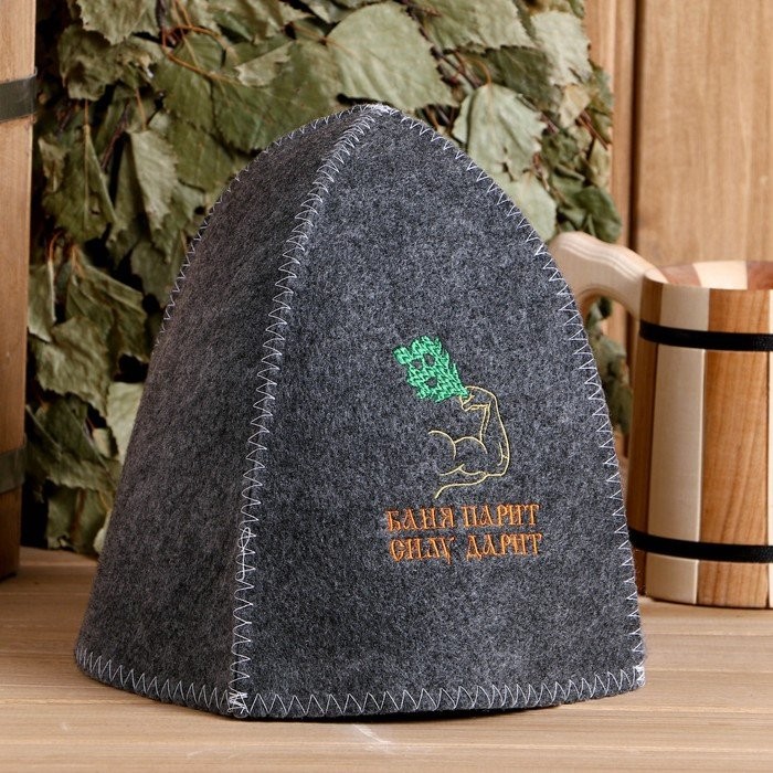 Шапка для бани с вышивкой «Баня парит, силу дарит», серая