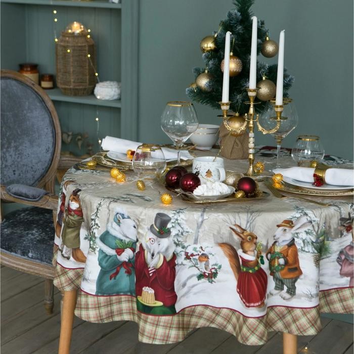 Скатерть «Этель» Winter holidays d=220см +/-3см с ГМВО, 100% хл, саржа 190гр/м2