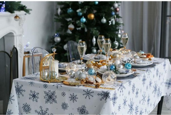 Скатерть Доляна «Новый год: Синие снежинки» 220×149 см, 100% хлопок, 164 г/м2