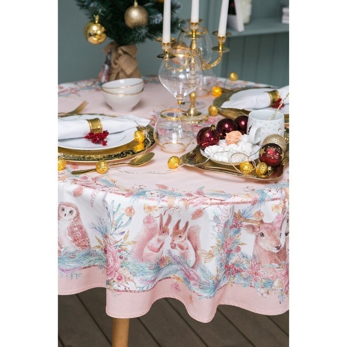 Скатерть «Этель» Pink magic d=220см +/-3см с ГМВО, 100%хл, саржа 190 гр/м2
