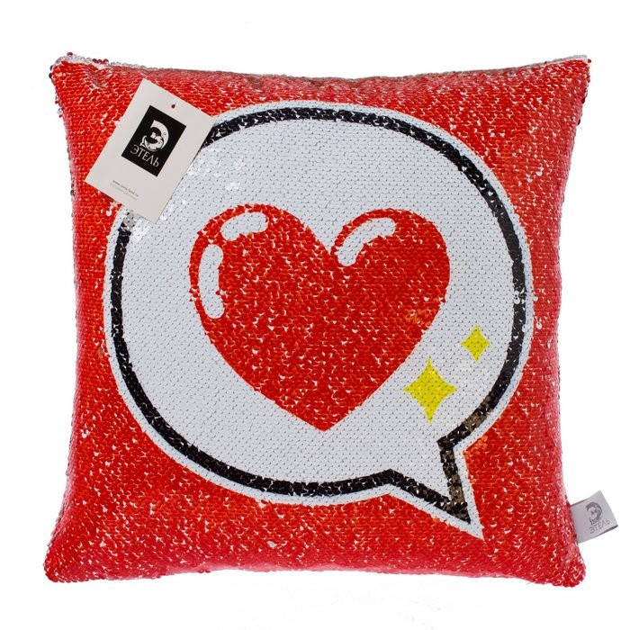 Наволочка с пайетками «Этель» Сердце, 40×40 см, велюр, 100% п/э