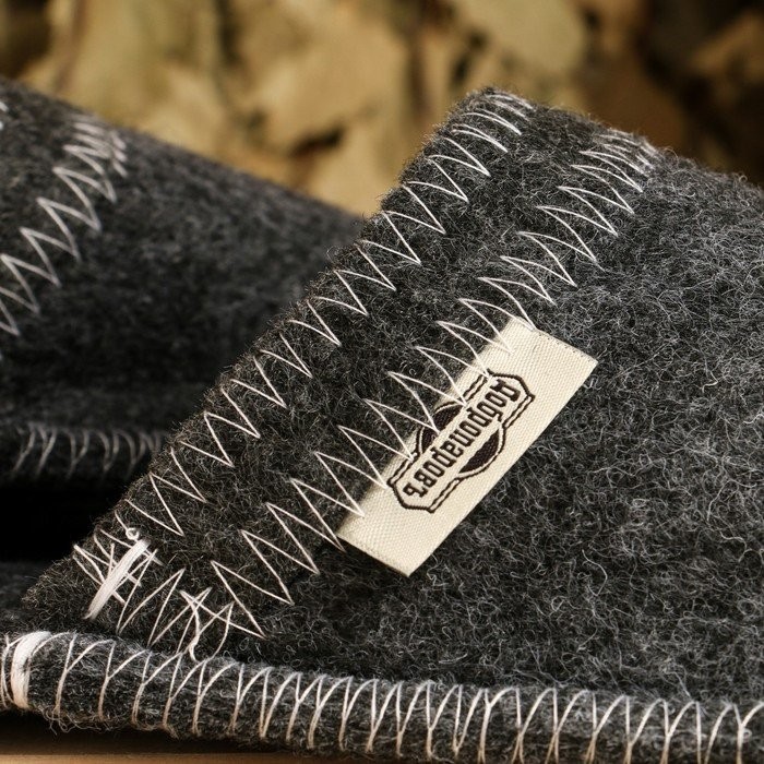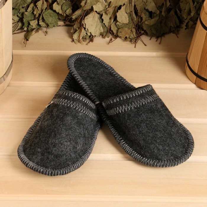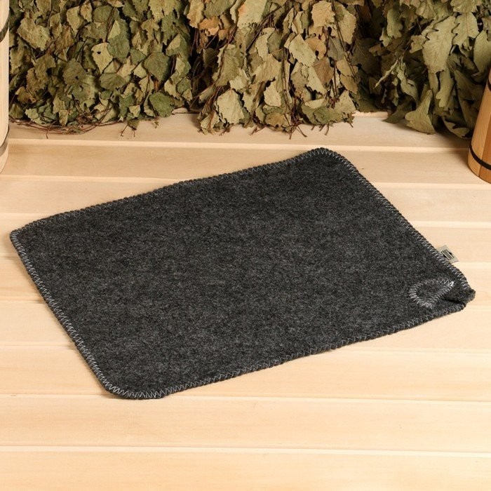 Тапочки из войлока и коврик впитывают влагу и сохраняют сухость, что обеспечивает комфорт во время посещения парной.