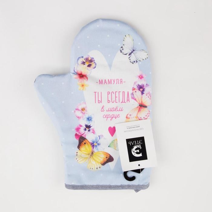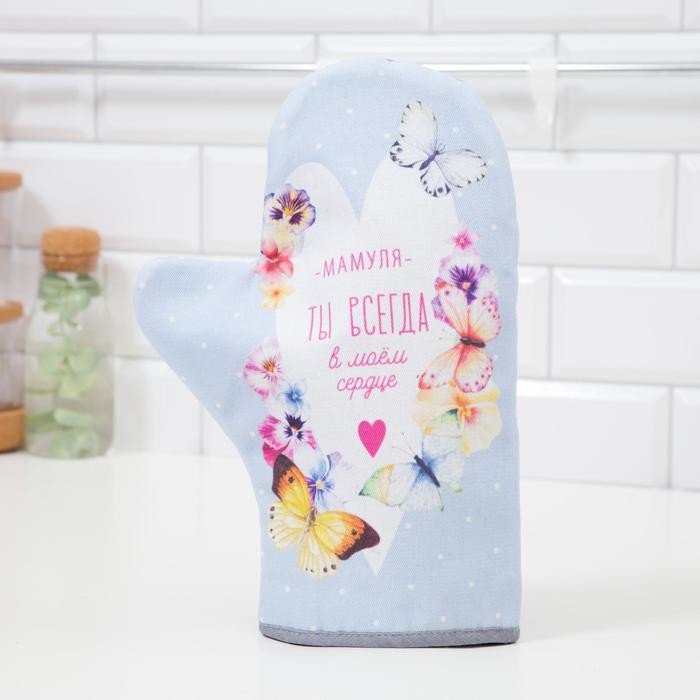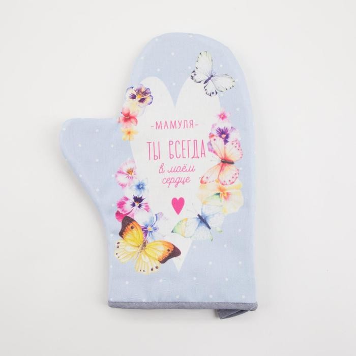 Варежка-прихватка «Мамуля» 20х28см, саржа, 100% х/л, ватин 250г/м2