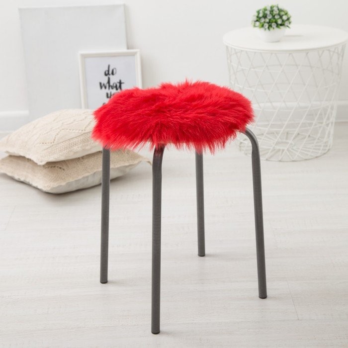 Сидушка на стул меховая Доляна «Пушинка» цв.красный d 30 cm,100% п/э