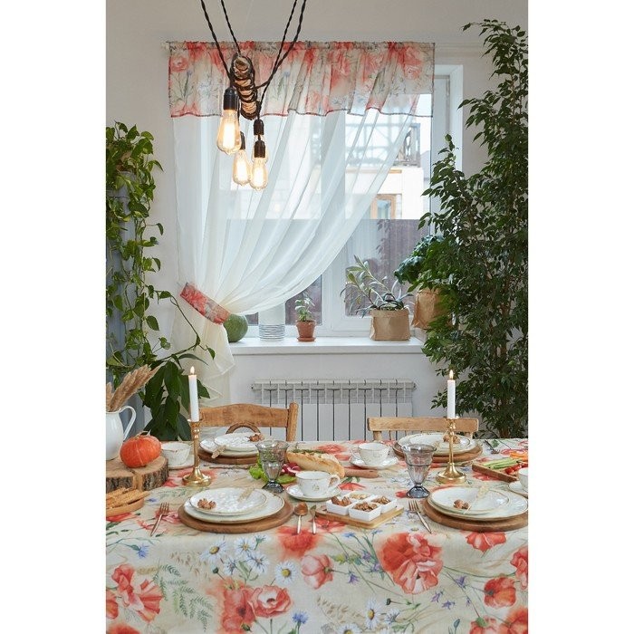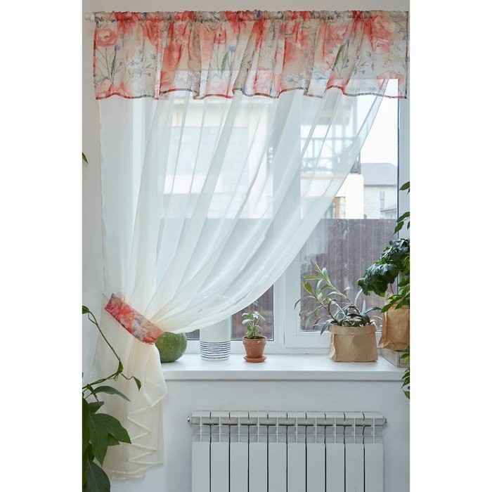 Тюль с подхватом и ламбрекеном «Маки» 250х200см, 100% п/э, вуаль