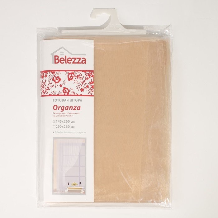 Штора Organza 145×260 см, шампань, шторная лента, 100% полиэстер