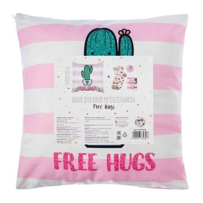 Подарочный набор «Free hugs» подушка-секрет 40×40 см и аксессуары (3 шт)