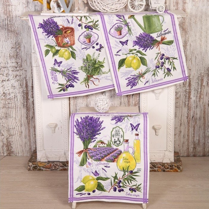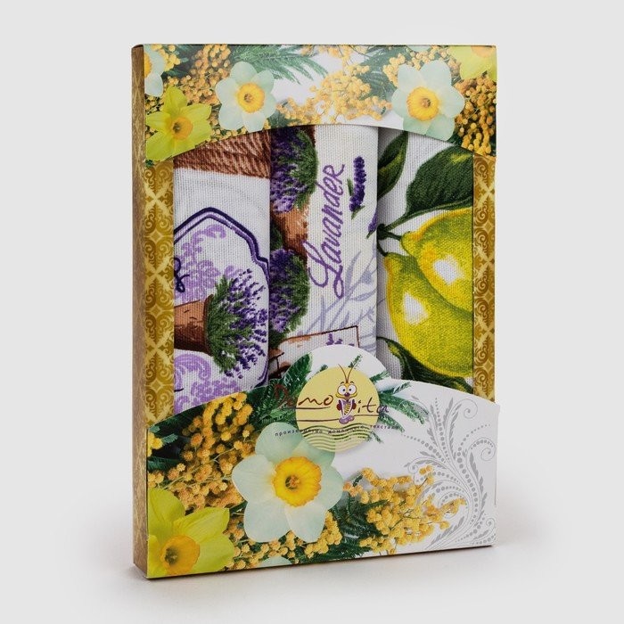 Набор полотенец в коробке Лаванда 45×60 см, 3 шт, вафля, 170 гр/м2, хлопок 100%
