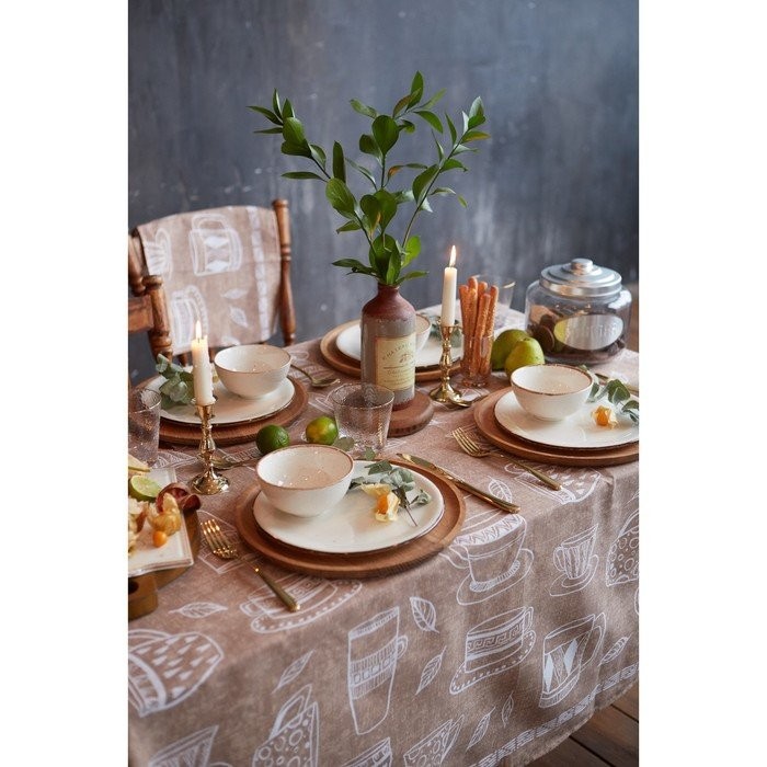 Скатерть «Доляна» Cup of tea 220×144 см, 100% хлопок, 164 г/м2