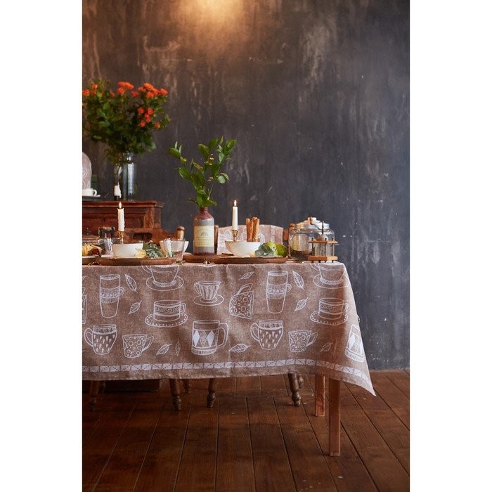 Скатерть «Доляна» Cup of tea 180×144 см, 100% хлопок, 164 г/м2