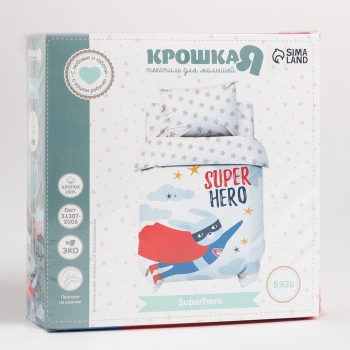Постельное бельё детское Крошка Я «Super hero», 112×147 см, 60×120+20 см, 40×60 см, 100% хлопок