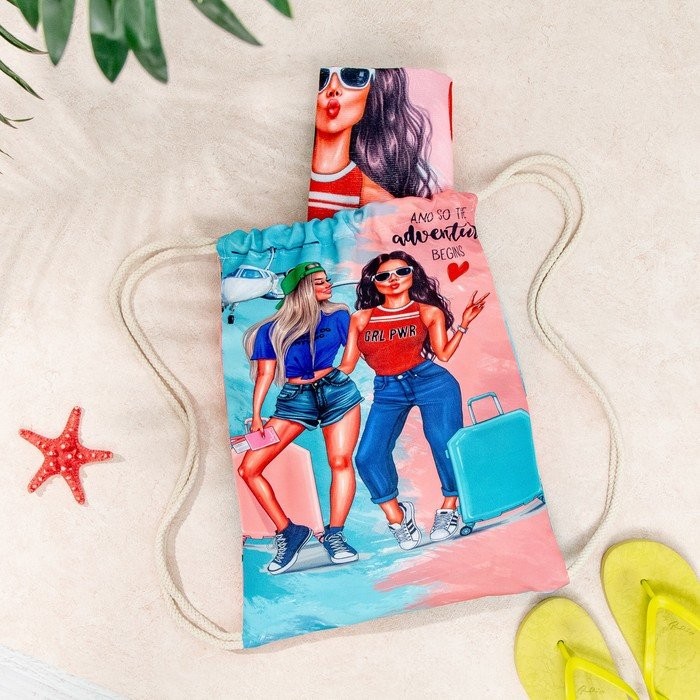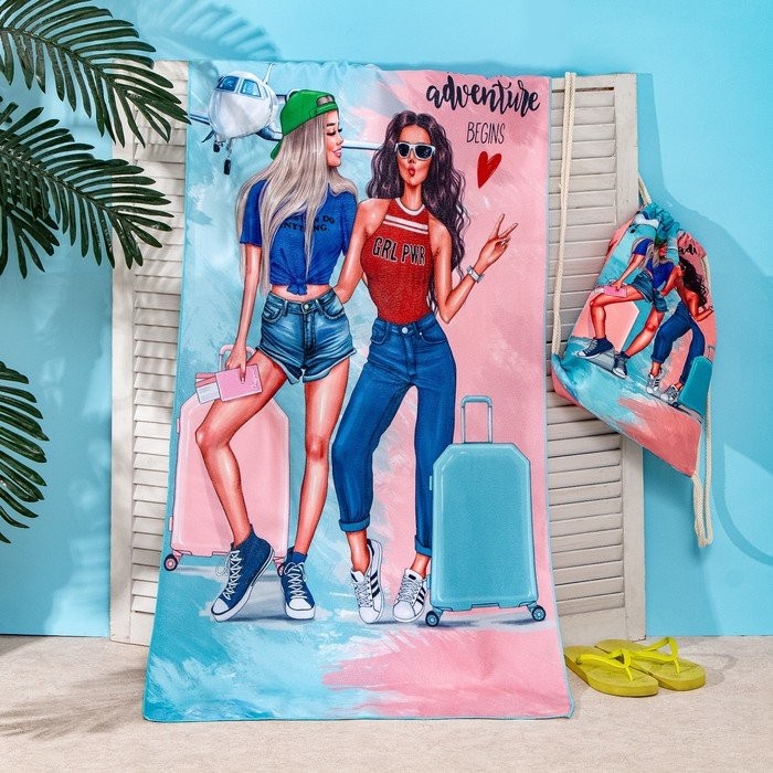 Полотенце пляжное в сумке Этель «Adventure» 70×140 см, микрофибра