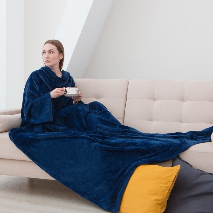 Плед с рукавами «Этель»,150*200 см, 30×50 см, синий, 100% п/э
