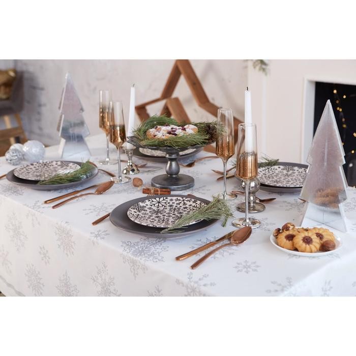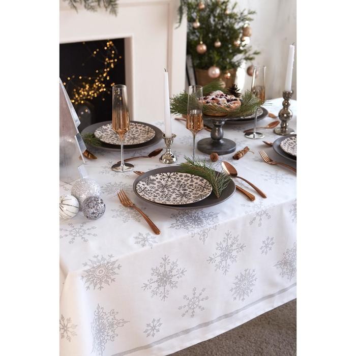 Скатерть «Этель» Серебряные снежинки 149х250см, 100%хл, 190 г/м2